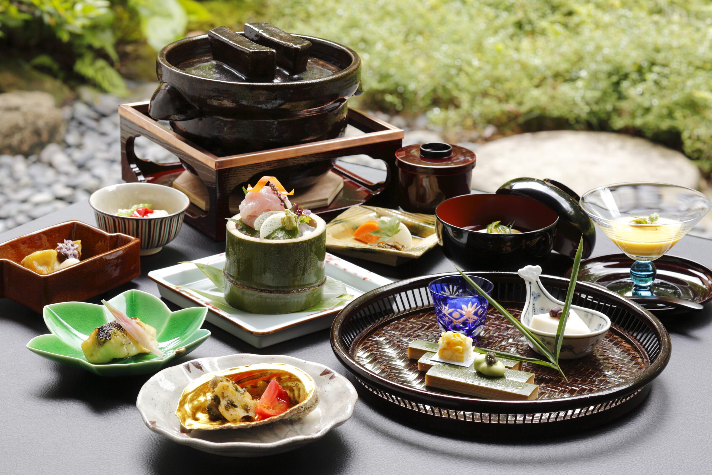 金城樓では、石川県の土地が育てた新鮮な食材が美しく生まれ変わった料理が、代々継承した器類に盛り付けてひとつひとつ丁寧に提供されています。