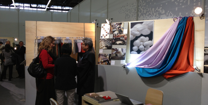 当時エルメスデザイナーであった寺西俊輔氏とパリの展示会で出会ったことをきっかけに牛首紬は洋装分野へと新たな展開を見せ始めました。