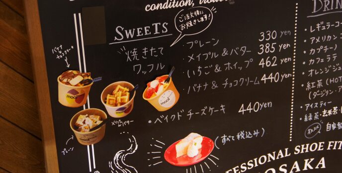 そして、店内にはカフェスペースも併設。ドイツで経験を積んだ専属シェフが手がけるスイーツは、ワッフルや数量限定のフルーツサンドなど逸品ばかり。靴選びの時間を、ゆったりと優雅に過ごせる至福の空間です。